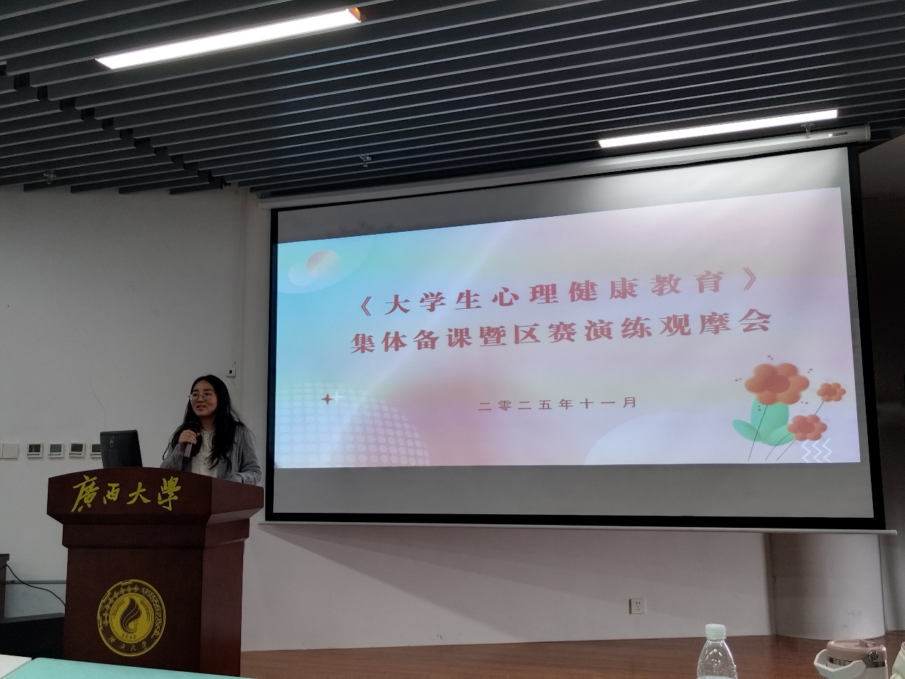 为进一步提升《大学生心理健康教育》课程的教学质量,推进教学改革,同时为参加广西高校大学生心理健康教育课教师教学能力大赛做赛前准备,近期,我校在大学生活动中心415团辅活动室,举办了《大学生心理健康教育》集体备课会暨区赛演练观摩会。
