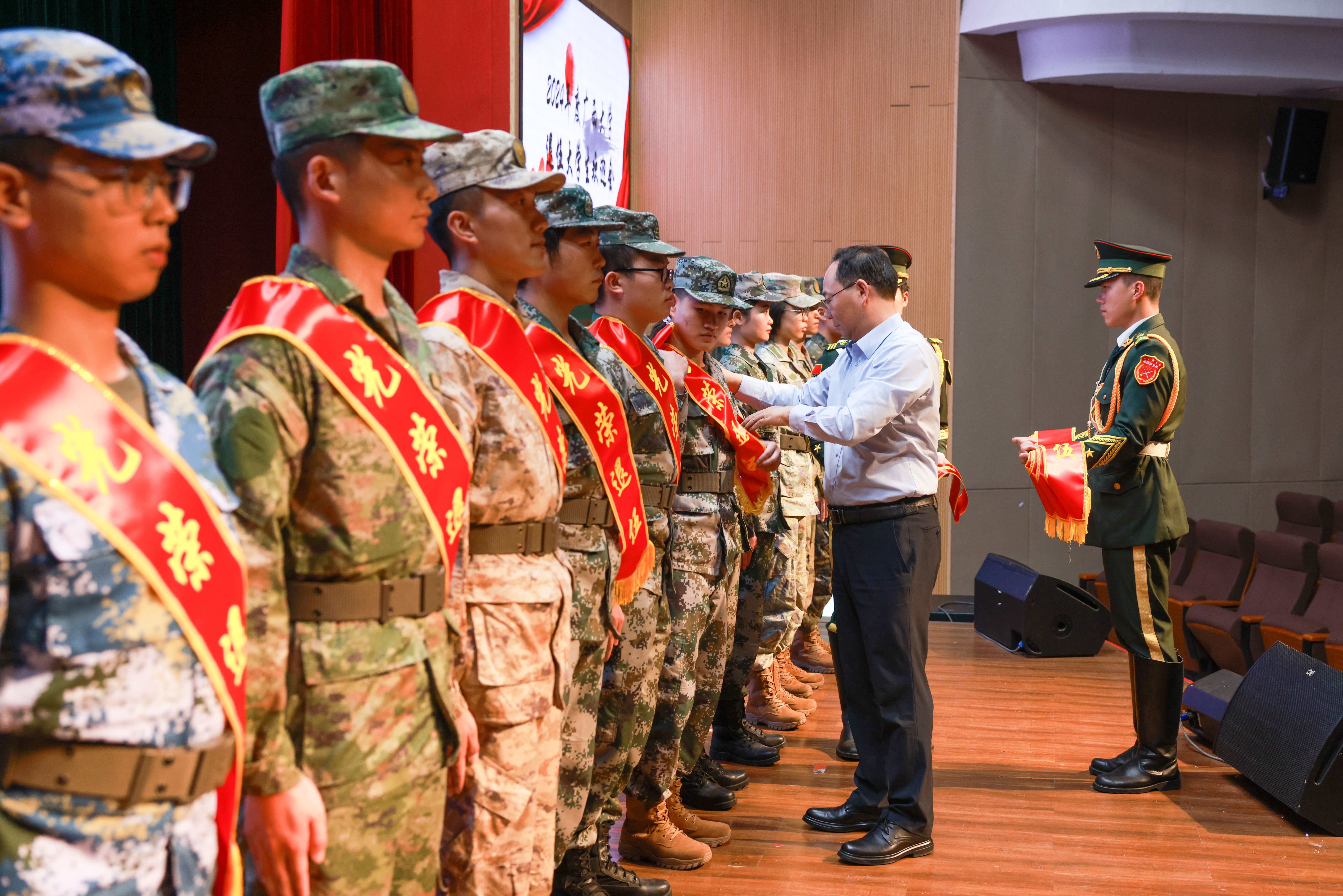 10月29日,我校在大学生活动中心举行2024年广西大学退伍大学生欢迎会。校党委常委、副校长于文进参加会议,并为2024年退伍返校大学生佩戴“光荣退伍”绶带,发放慰问金。